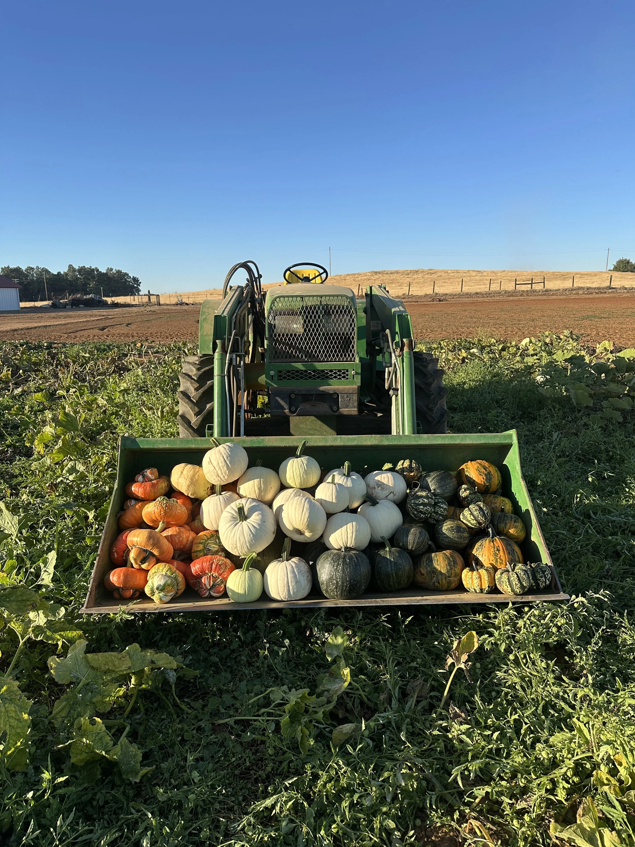 We're in our second year of growing pumpkins, and we'd love to share a bit of our harvest with you! Each package includes a variety of ornamental gourds, mini, carvers, heirloom, French, and ghost white pumpkins. The larger packages include hay, corn stalks, and our 50+ pound pumpkins (or as we call them, big boys). These items you can always “add-on” to a smaller package.